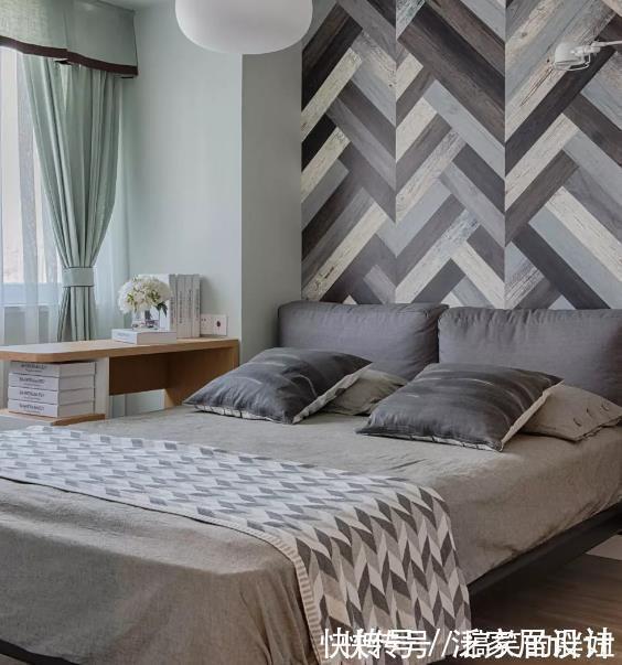 主卧:主卧的床头背景墙比较有个性,虽然整个空间的面积并不是很大,但是这样的设计却让整个空间增加了很多看点,拼接花纹的背景墙和床品的颜色搭配在一起,看上去更静谧美好,靠着床的一侧还做了一些小书桌,摆满了自己喜欢的书籍,睡在床上看点睡前故事也会让人觉得挺不错的。