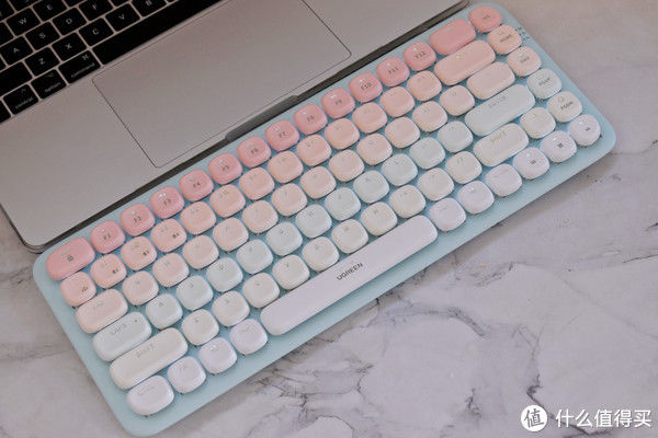 这款绿联FUN+键盘一段时间使用下来,这把键盘最大的特点其实就是清新可爱的渐变色设计,非常适合喜欢用心装点自己桌面的年轻用户。超薄+585g的自重,满足轻盈便携的需求。另外它细腻舒适,干净利落的打字手感,无论你是居家办公,还是办公室码字,它都非常适用。